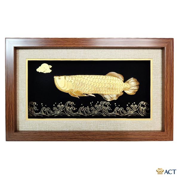 Qùa tặng Tranh Cá Rồng dát vàng 24k ACT GOLD, kích thước đế: 30 x 18 cm, ACT-3018-0007