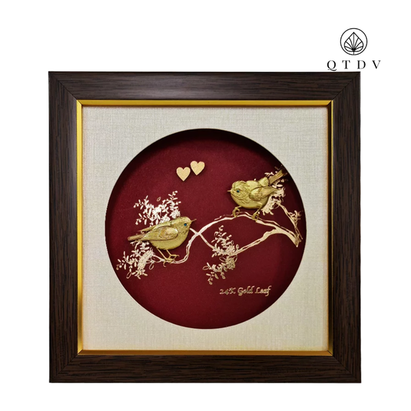 1. Quà tặng tranh Đôi Chim Sẻ dát vàng 24k